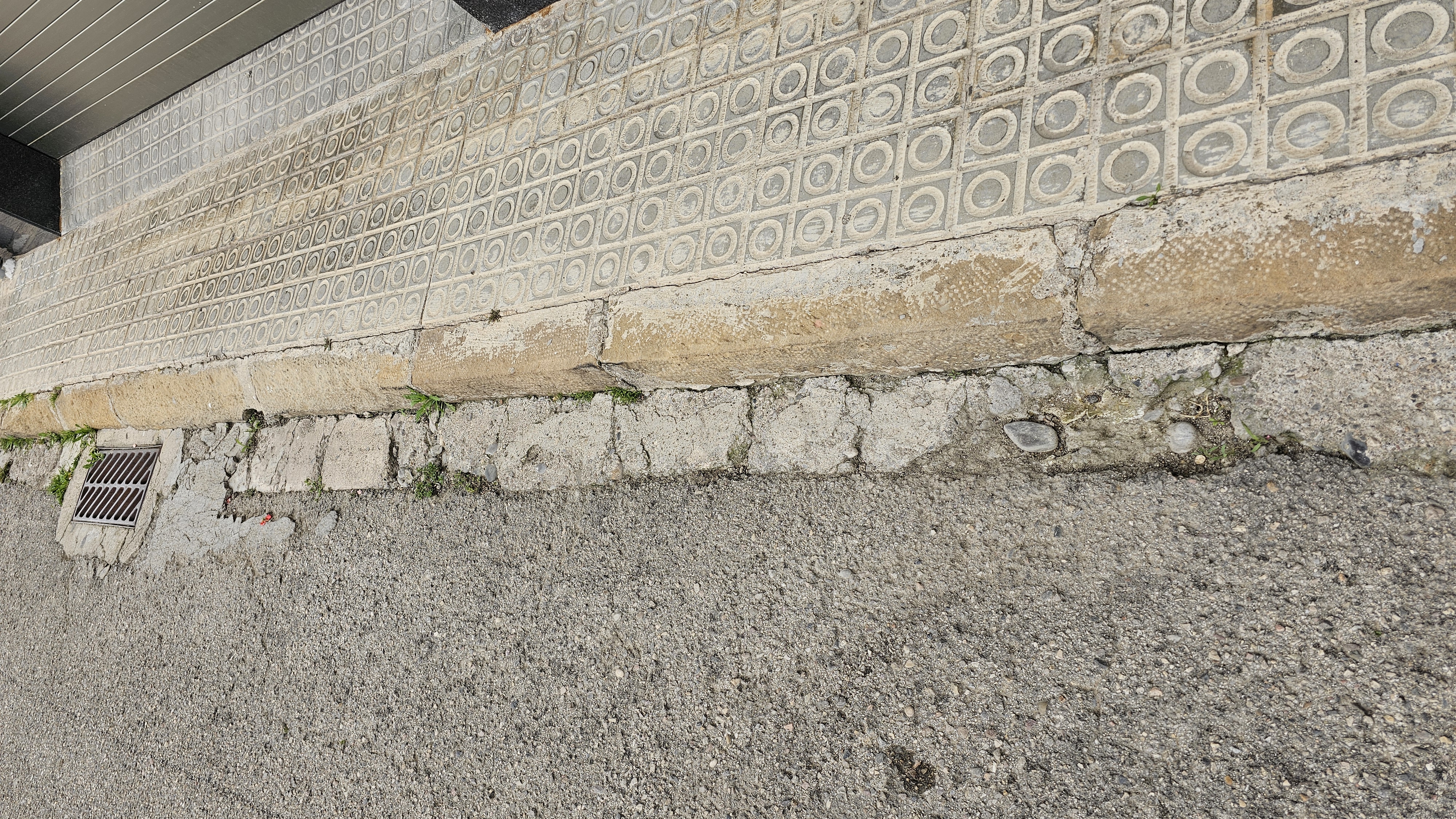 Tram de vorera aixecada, amb perill de caigudes. Es mou al trepitjar. Està al costat d'una de les portes laterals de sortida d'emergència del pavelló.VP202300011409/07/2023