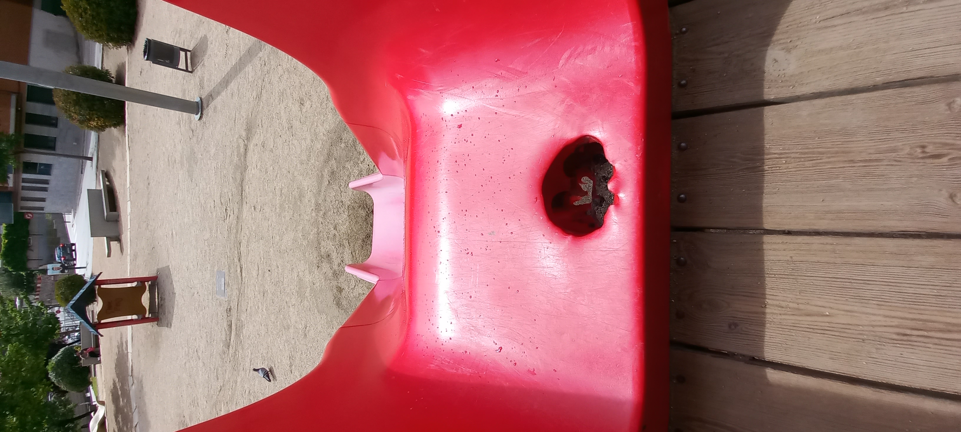 Tobogán gran del Parc de la Mare trencat, amb un forat a la part de dalt (sembla produit per foc).VP202300010222/05/2023